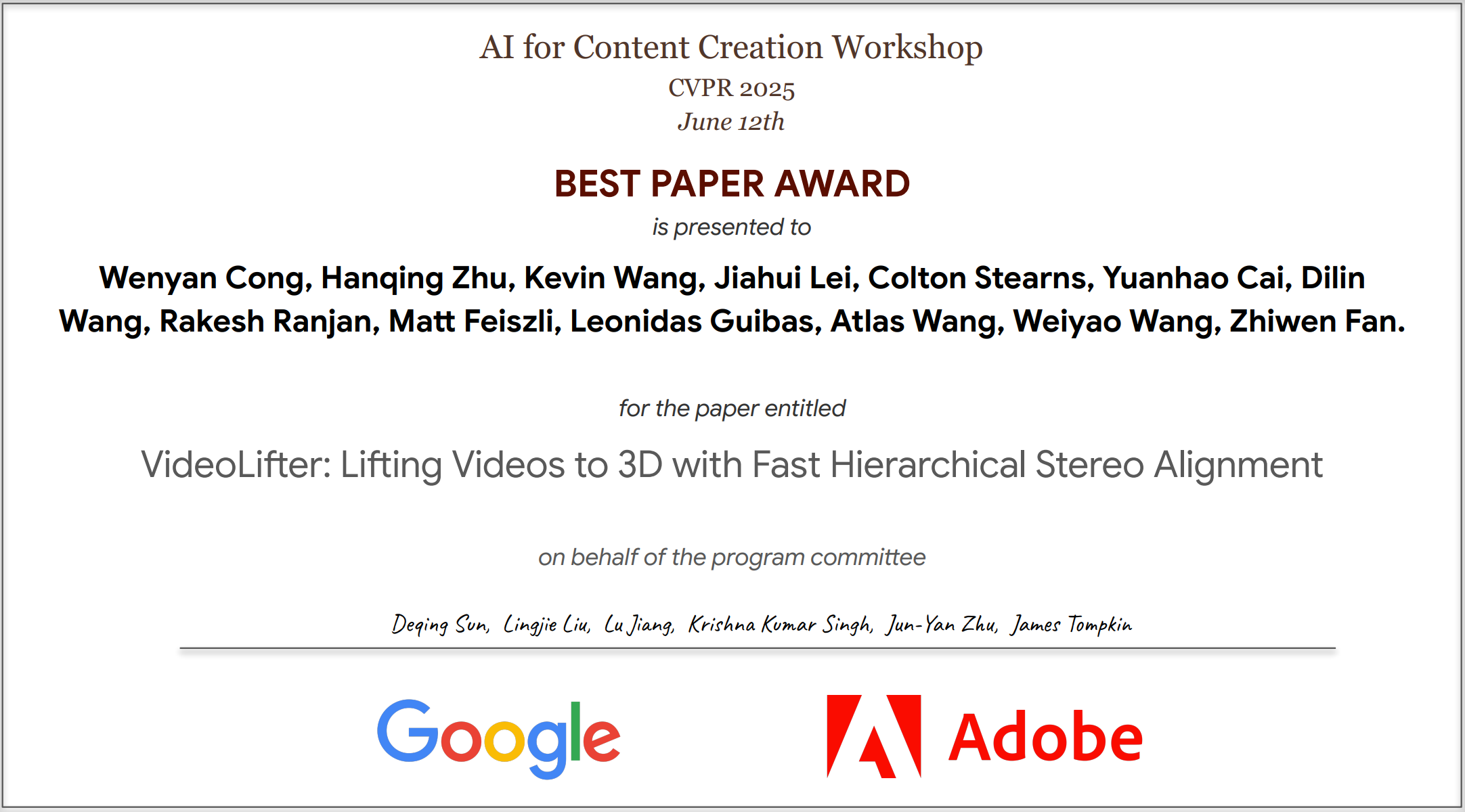 Best Paper Award of AI4CC Workshop at CVPR, 2025
